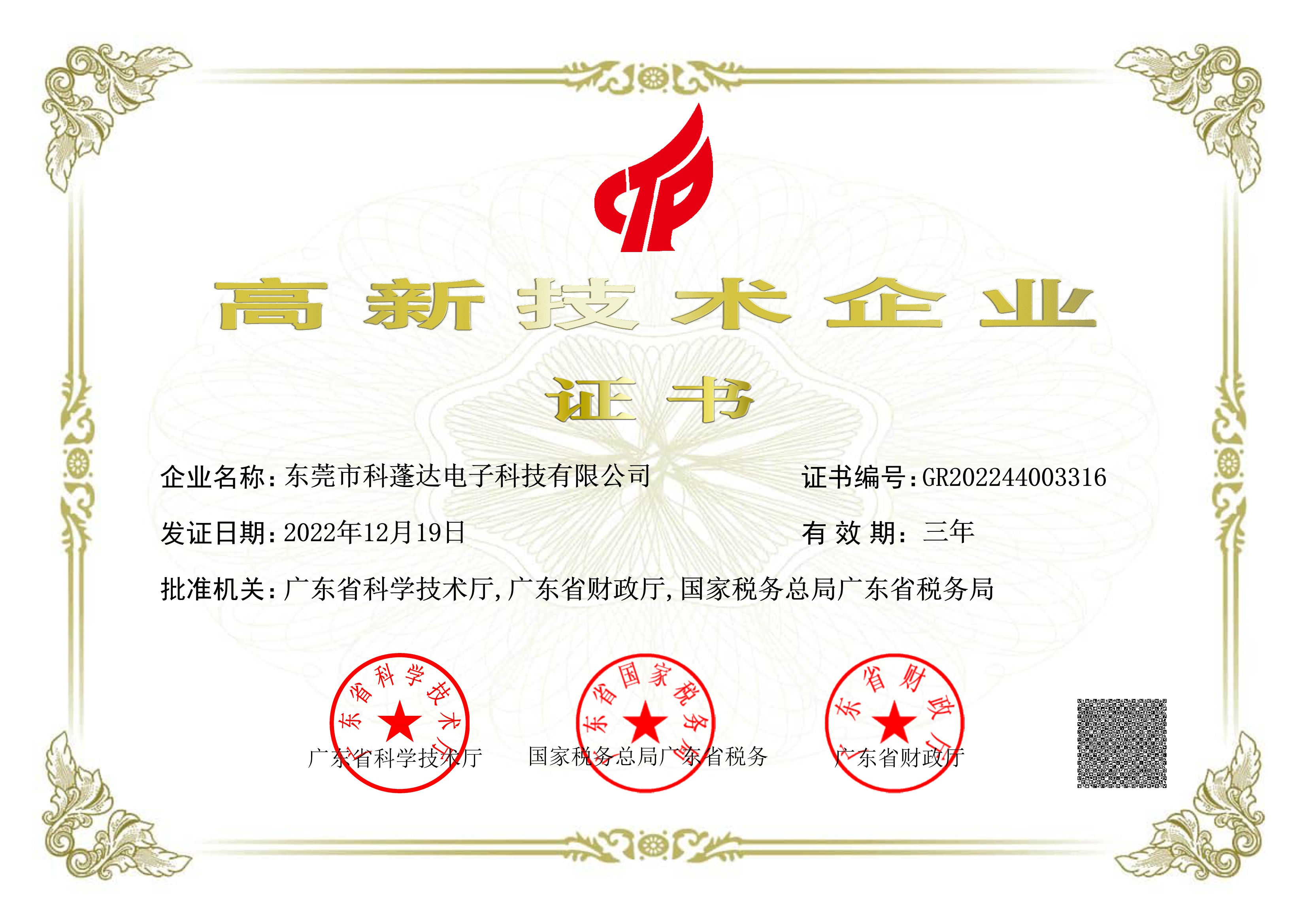 高新技術(shù)企業(yè)證書