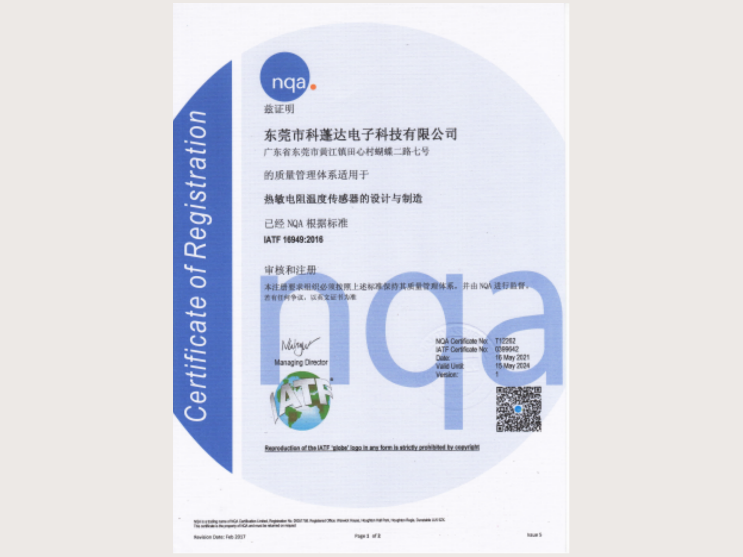 榮獲ATF16948汽車質量體系認證